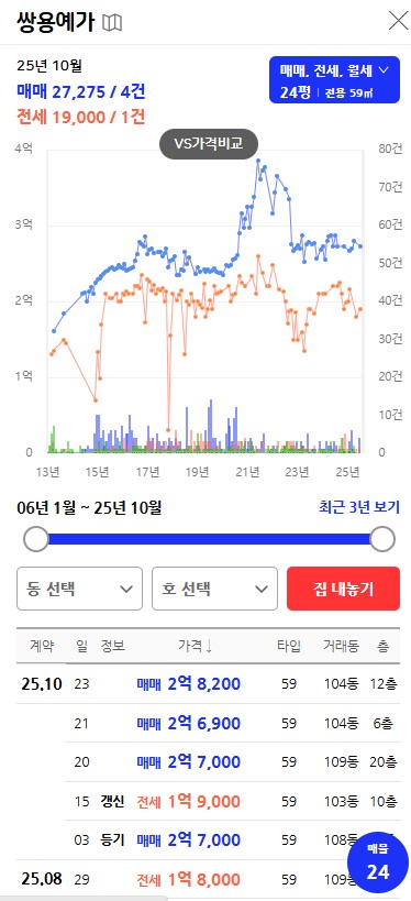국토부 실거래가를 보면, 2025년 현재 용호예가의